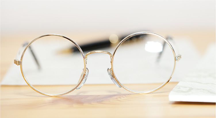知的でレトロな雰囲気が魅力の「丸メガネ」。