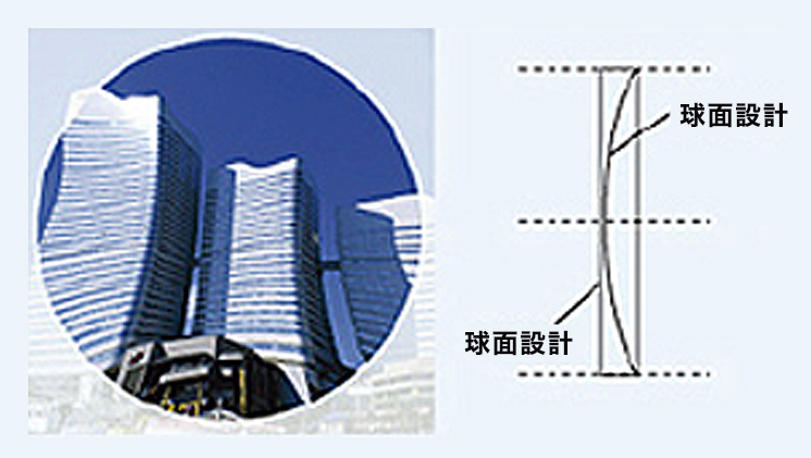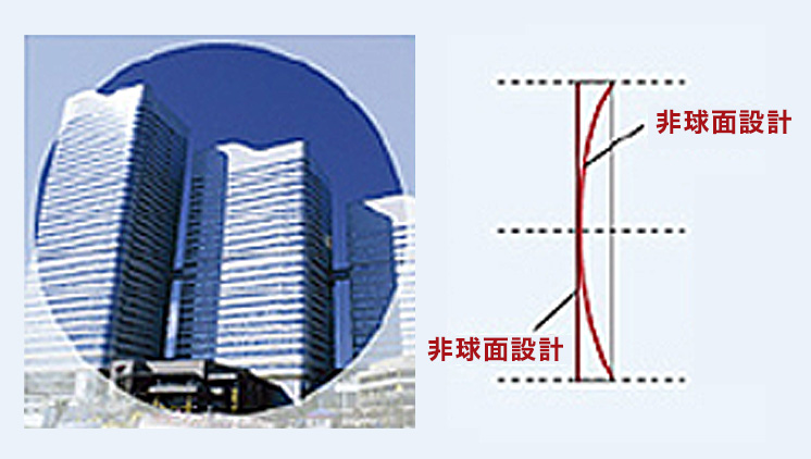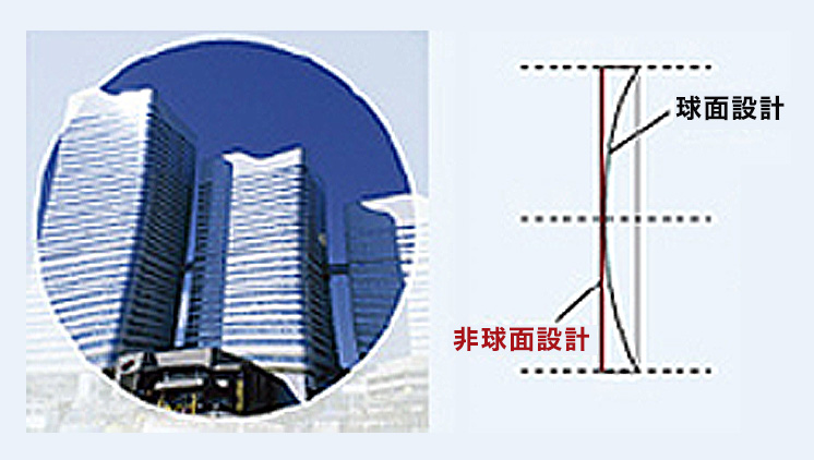 非球面レンズとは、レンズの外面カーブを非球面に設計しています。