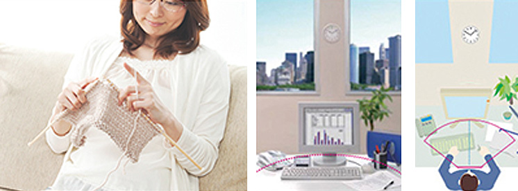 - テレビを見たり、料理をはじめとする家事全般、会議や室内でのお仕事、趣味など。