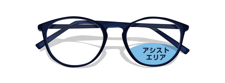 - 中近両用レンズよりもさらに手元の視野が広く、手元専用レンズよりも奥の方まで見えます。